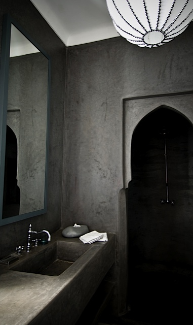 La méridienne permet d'accueillir une troisième personne (plutôt un enfant, au tarif de 20€ supplémentaires par nuit). Sa salle de bain, en tadelakt anthracite, comprend une douche avec un dôme esprit hammam et toilettes.