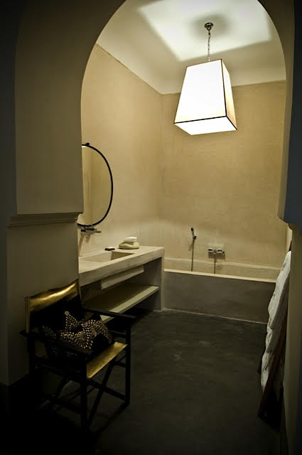 1st floor, Suite CHAPTER 3, the largest of the riad is also the Moorish every room with its black and gold calligraphy as a headboard, cushions and threw black and gold bed. The bathroom is open to the following natural tadelakt. It has a bath and separate toilet.