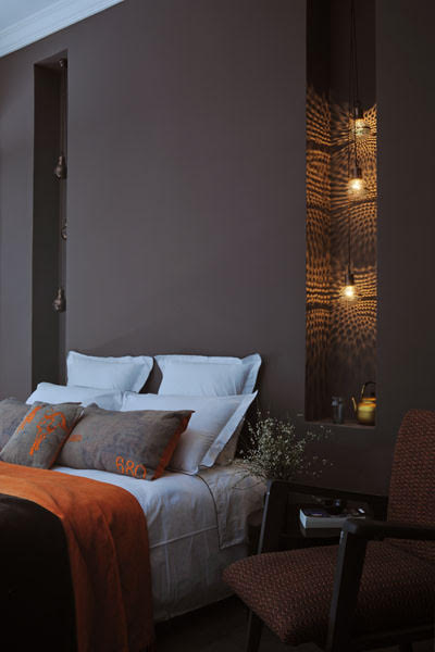 Une des plus grande du riad, au 1er étage, vous apprécierez le lit de 160 de la Suite CHAPITRE 6 en regardant crépiter le feu dans la cheminée lors de soirées hivernales ou tranquillement assis dans le petit salon. Elle se décline dans des tons chaleureux de chocolat et orange.