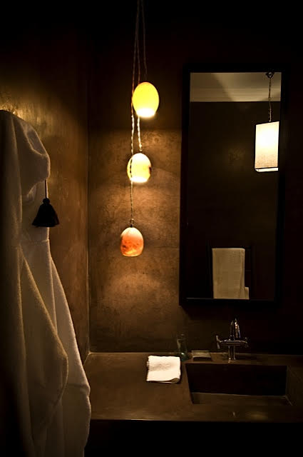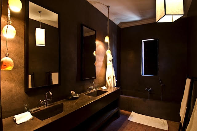 Pour votre confort, un grand dressing, une salle de bain en tadelakt chocolat dotée d'une baignoire avec vue sur le derb, 2 vasques ainsi que des toilettes séparées. De magnifiques carreaux ciment ornent le sol.